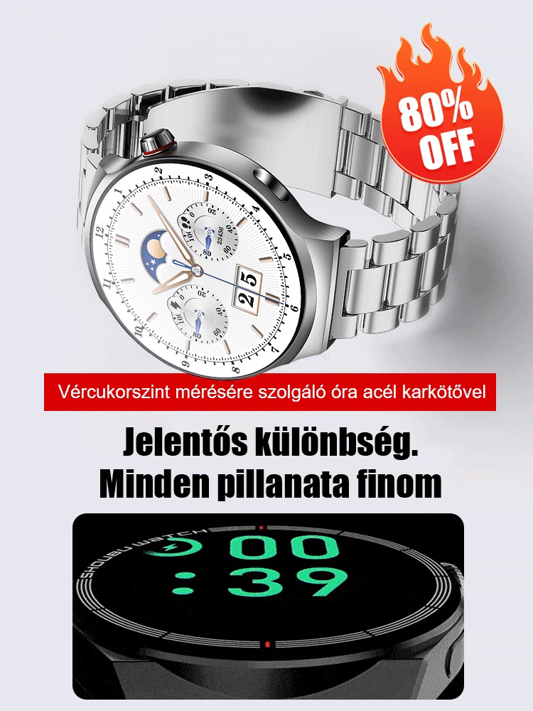 【Forró eladó】Vércukorszint mérésére szolgáló óra acélszíjjal