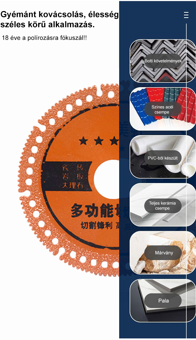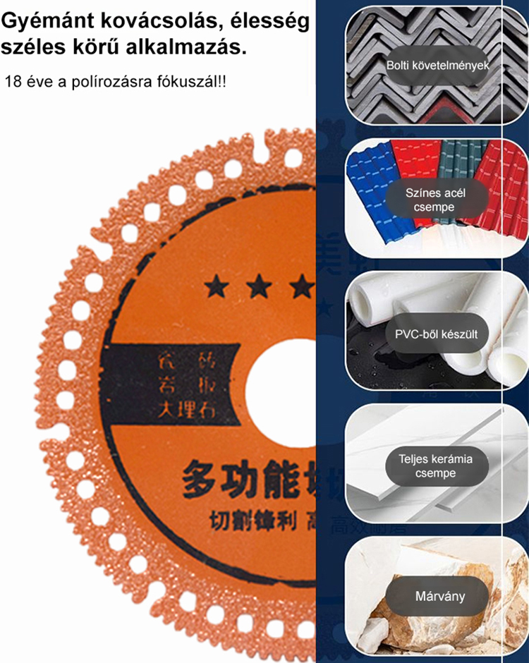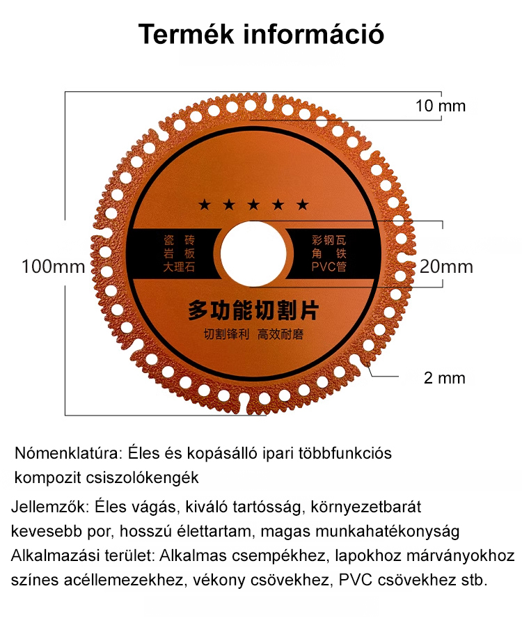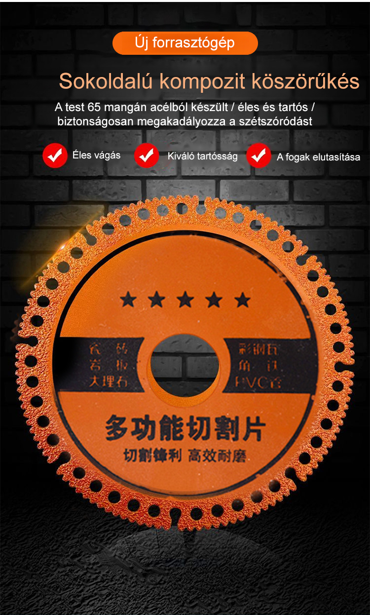 Éles, kopásálló ipari kompozit multifunkcionális vágókorong