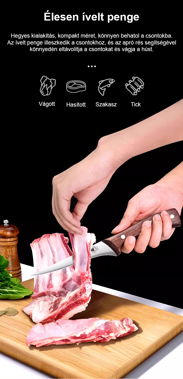 Egy vágás a csontból! Német éles kés könnyen eltávolítja a csontokat.