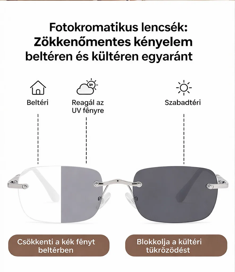 Szuperkönnyű Keret Nélküli Fényre Sötétedő Olvasószemüveg
