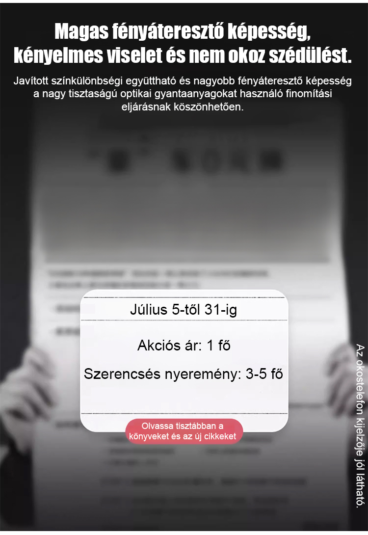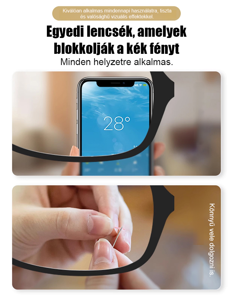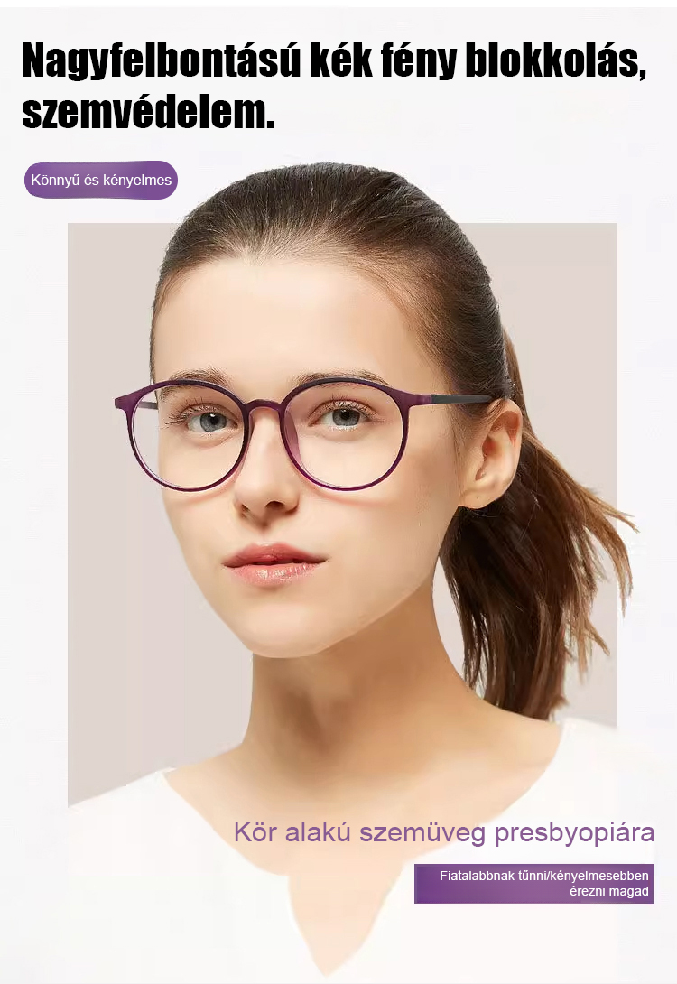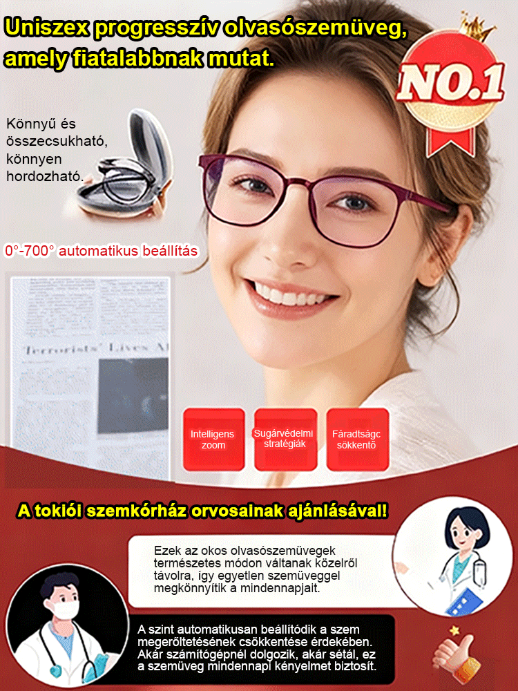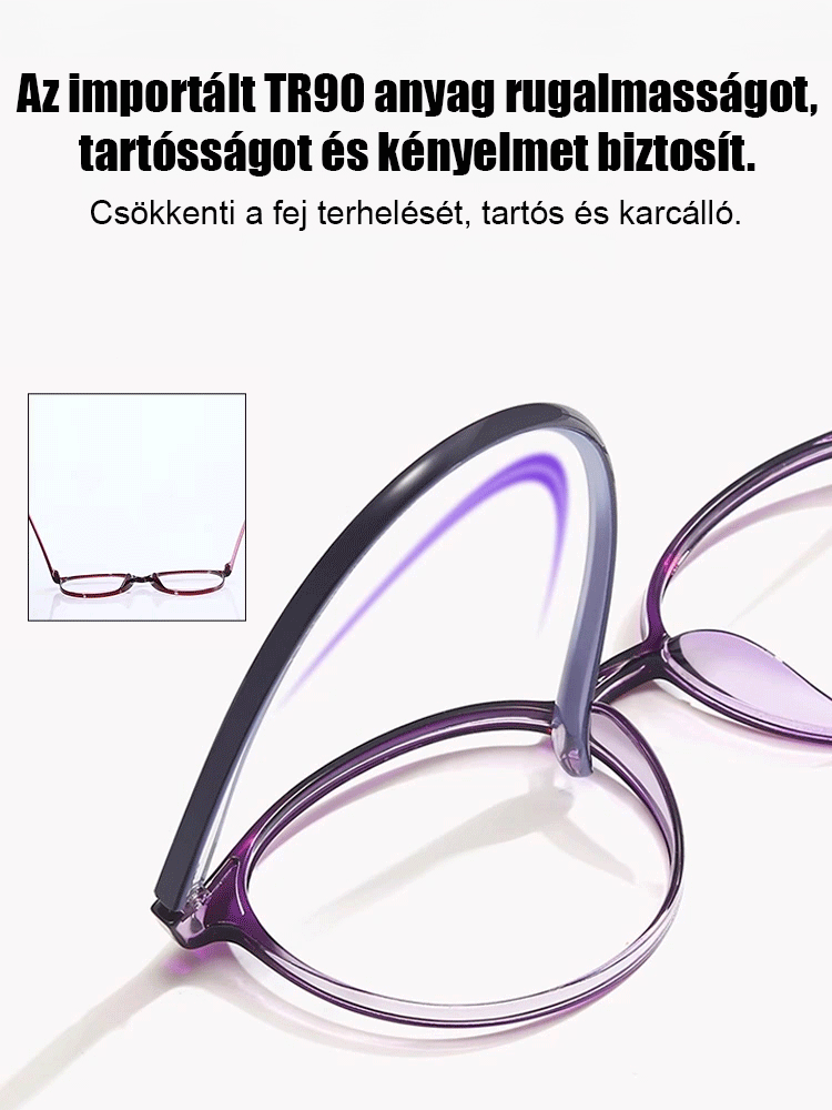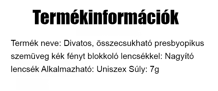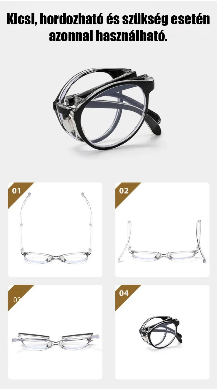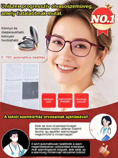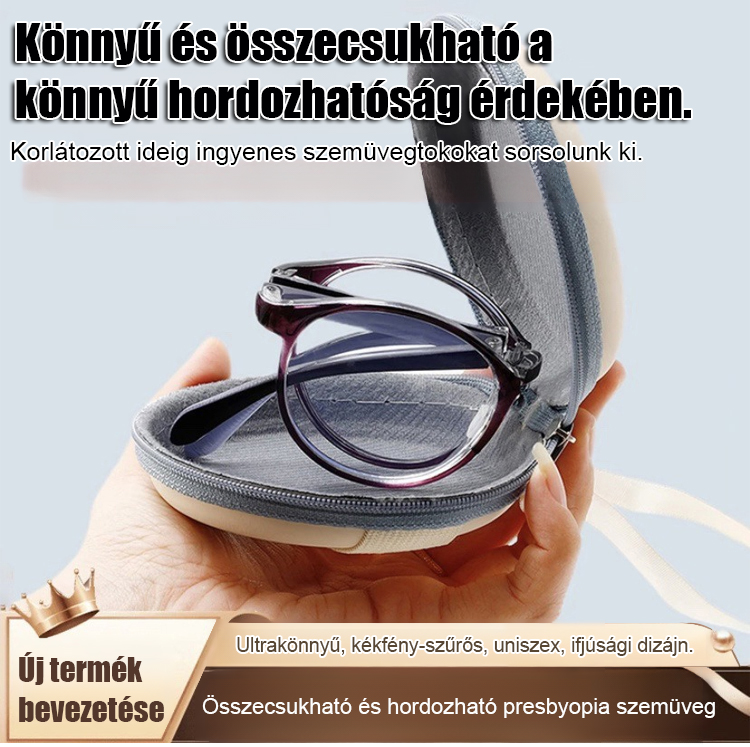 Divatos, kényelmes, összecsukható szemüveg, nagy felbontású, kékfény szűrős, automatikus fókuszálású