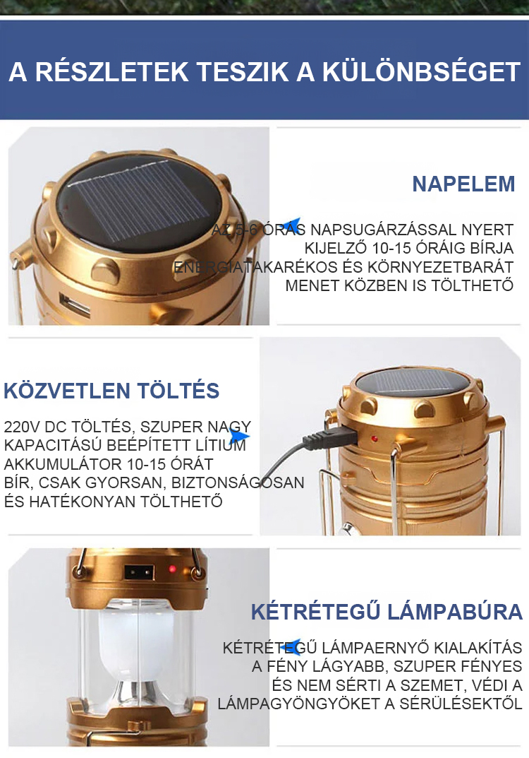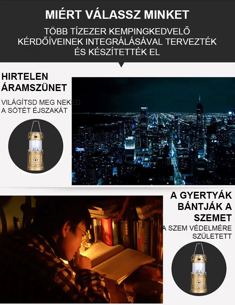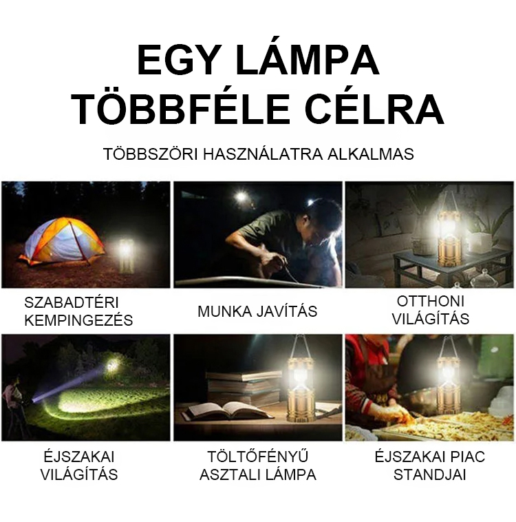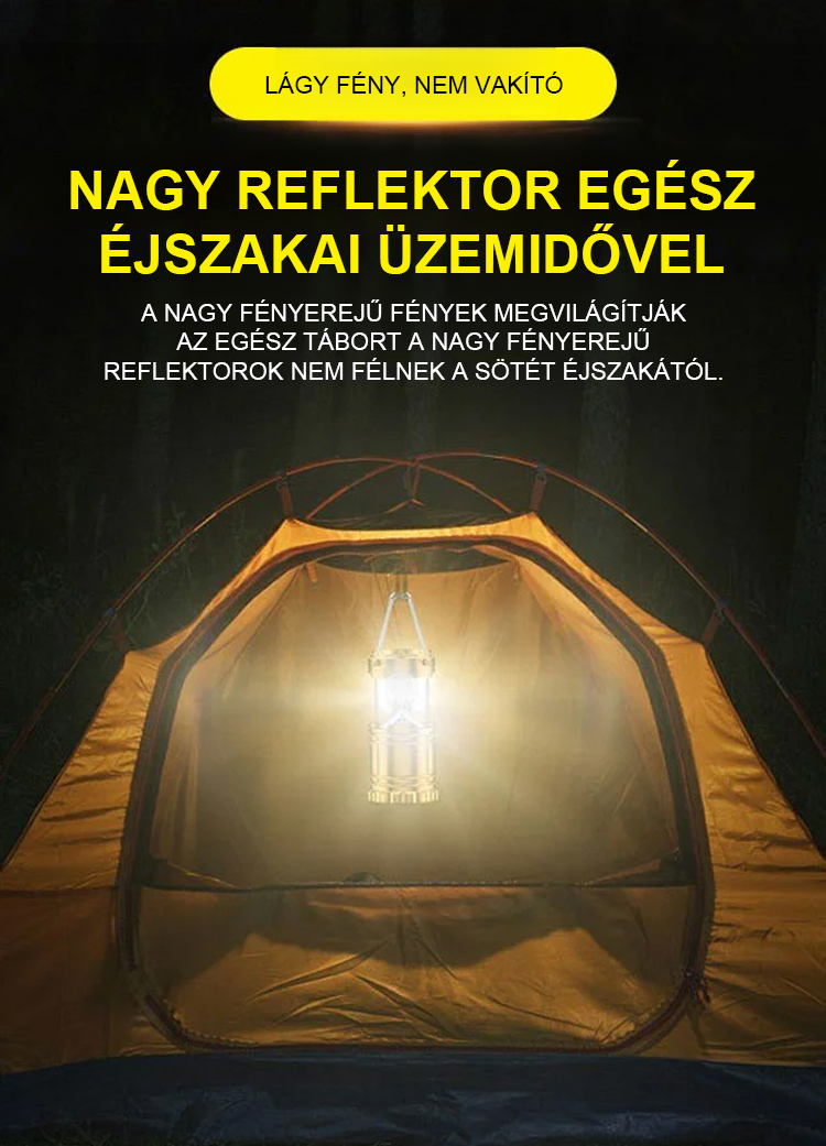Vízálló, multifunkcionális napelemes lámpa